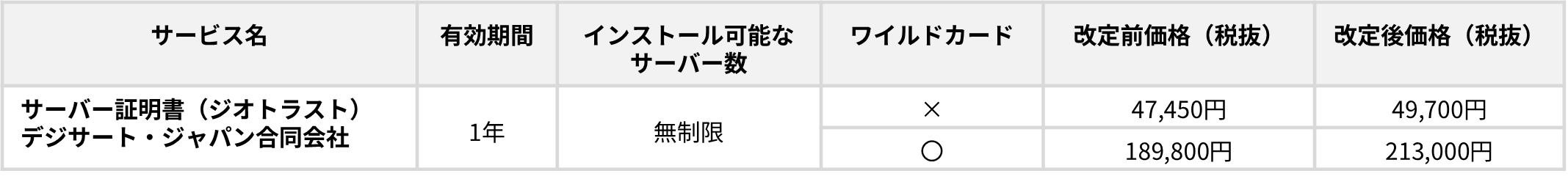 FJcloud-V(旧ニフクラ)で提供中の「サーバー証明書 ジオトラスト(デジサート・ジャパン合同会社)」につきまして、デジサート・ジャパン社の価格改定(2025年7月実施)に伴い、