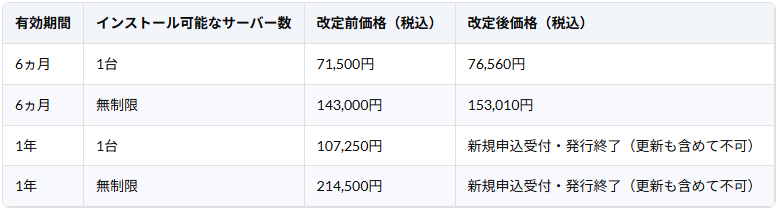 提供元(サイバートラスト株式会社)による価格改定が発生したため、以下の通り価格を改定いたします。